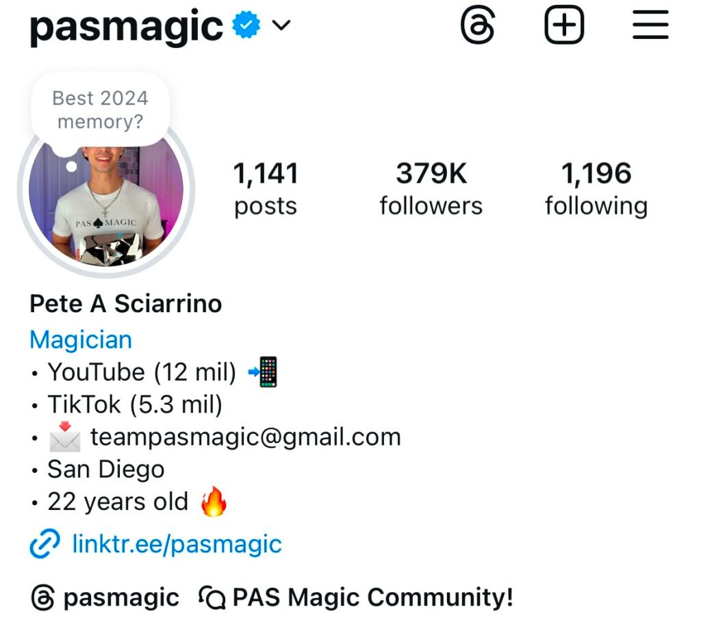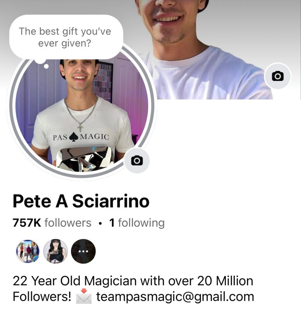 Pete Sciarrino (PAS Magic) is a content creator with over 20 million followers